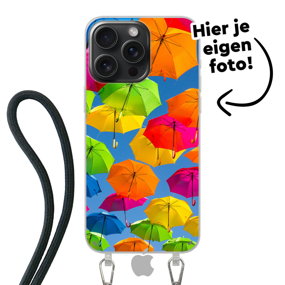 Ontdek het ultieme iPhone 15 Pro Max hoesje! Beschermend flexibel soft case iPhone hoesje met kabel voor om je lichaam. Jouw ontwerp in levendige kleuren met UV-print.